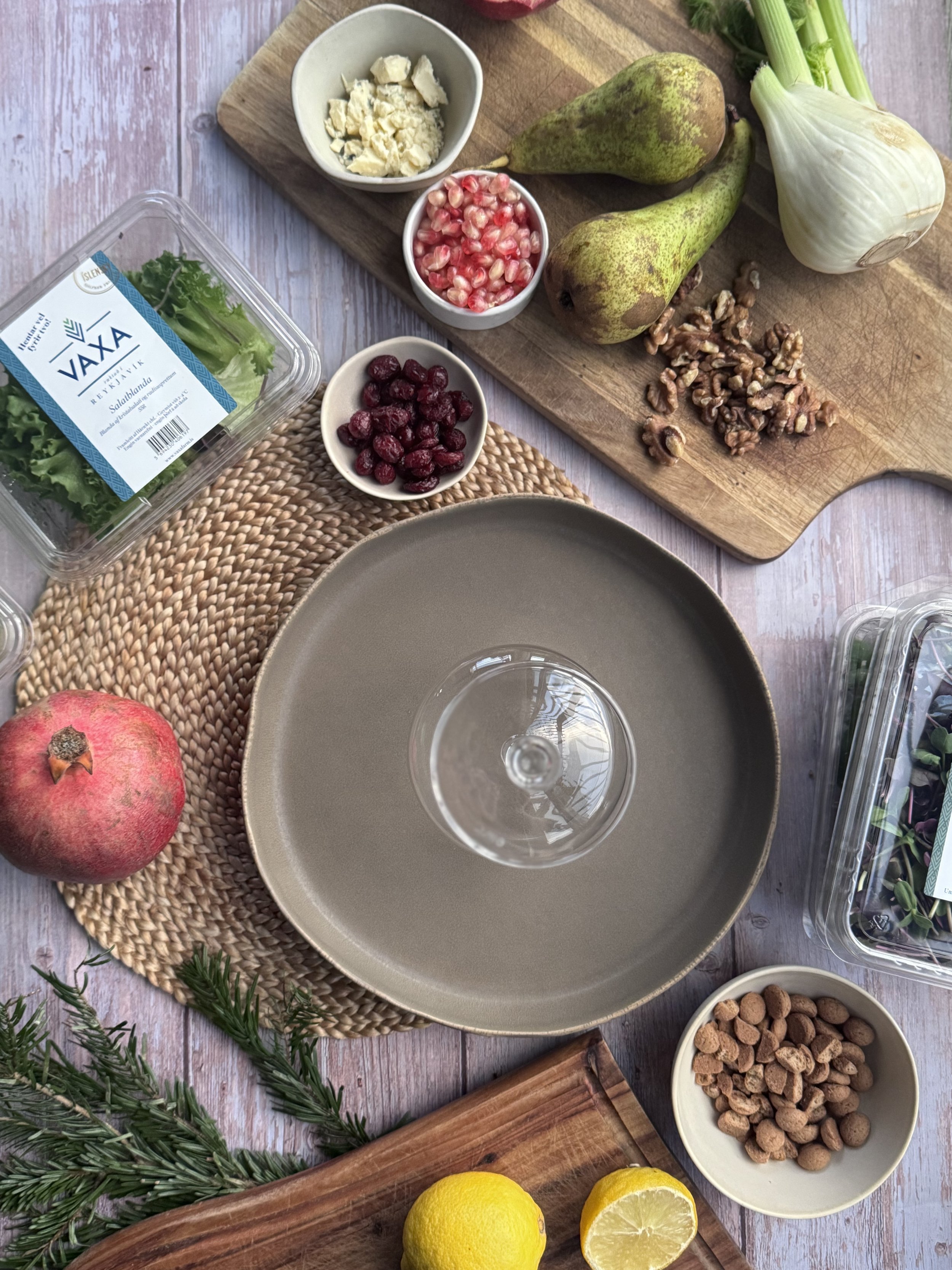Hátíðlegt fennel- og perusalat með sprettum, gráðost og piparkökum