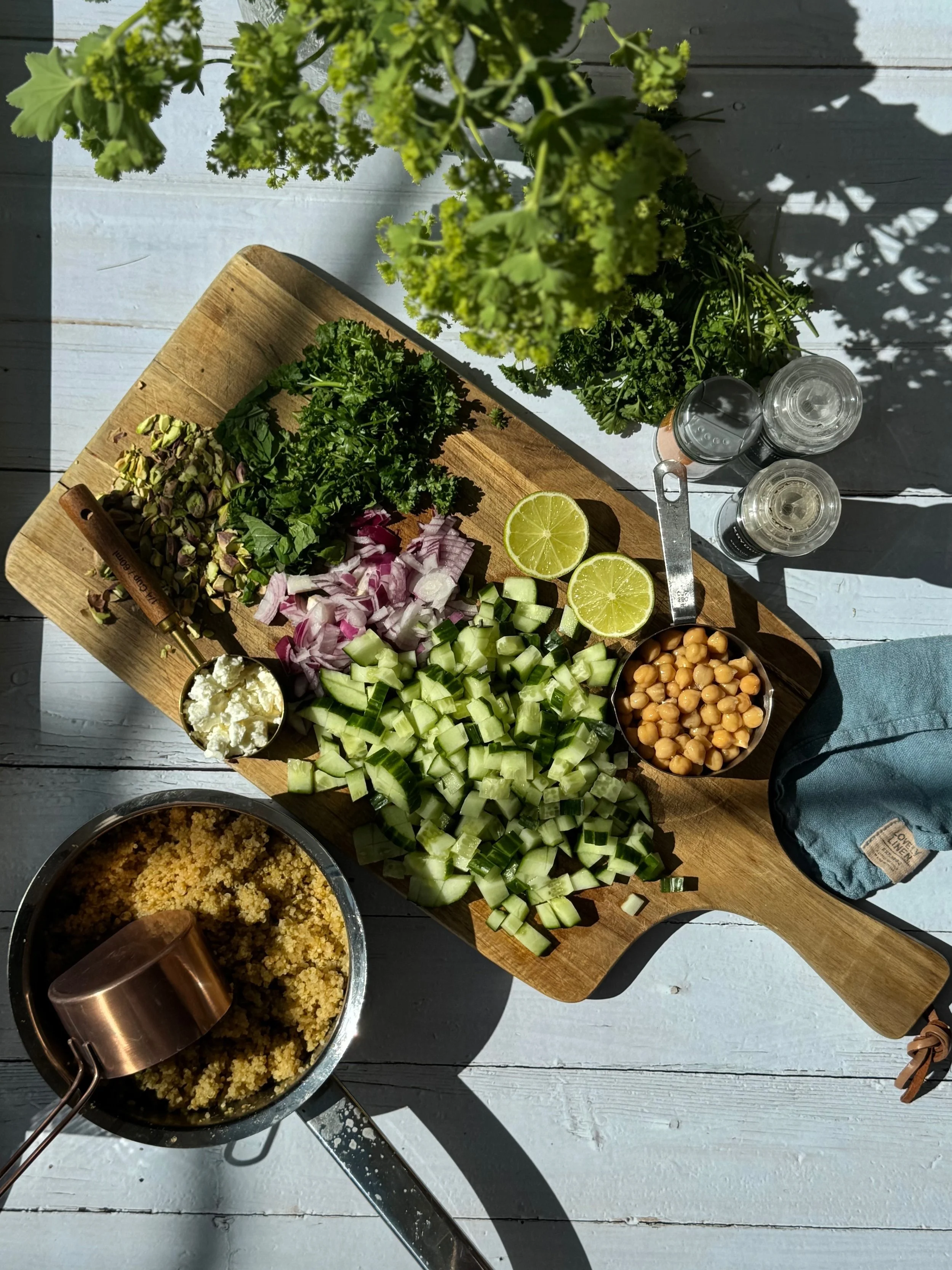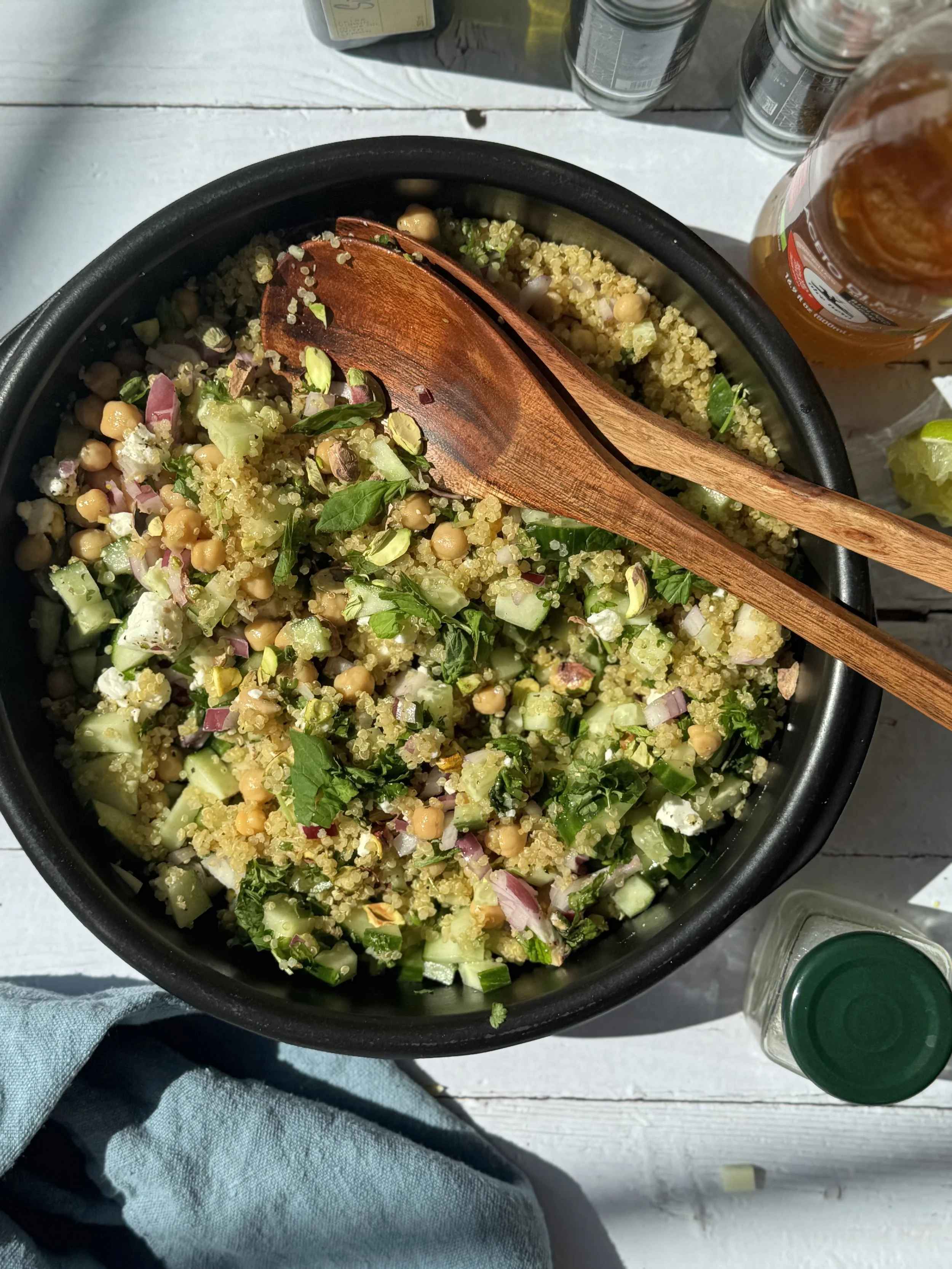 Kínóasalat með kjúklingabaunum, myntu & pistasíum
