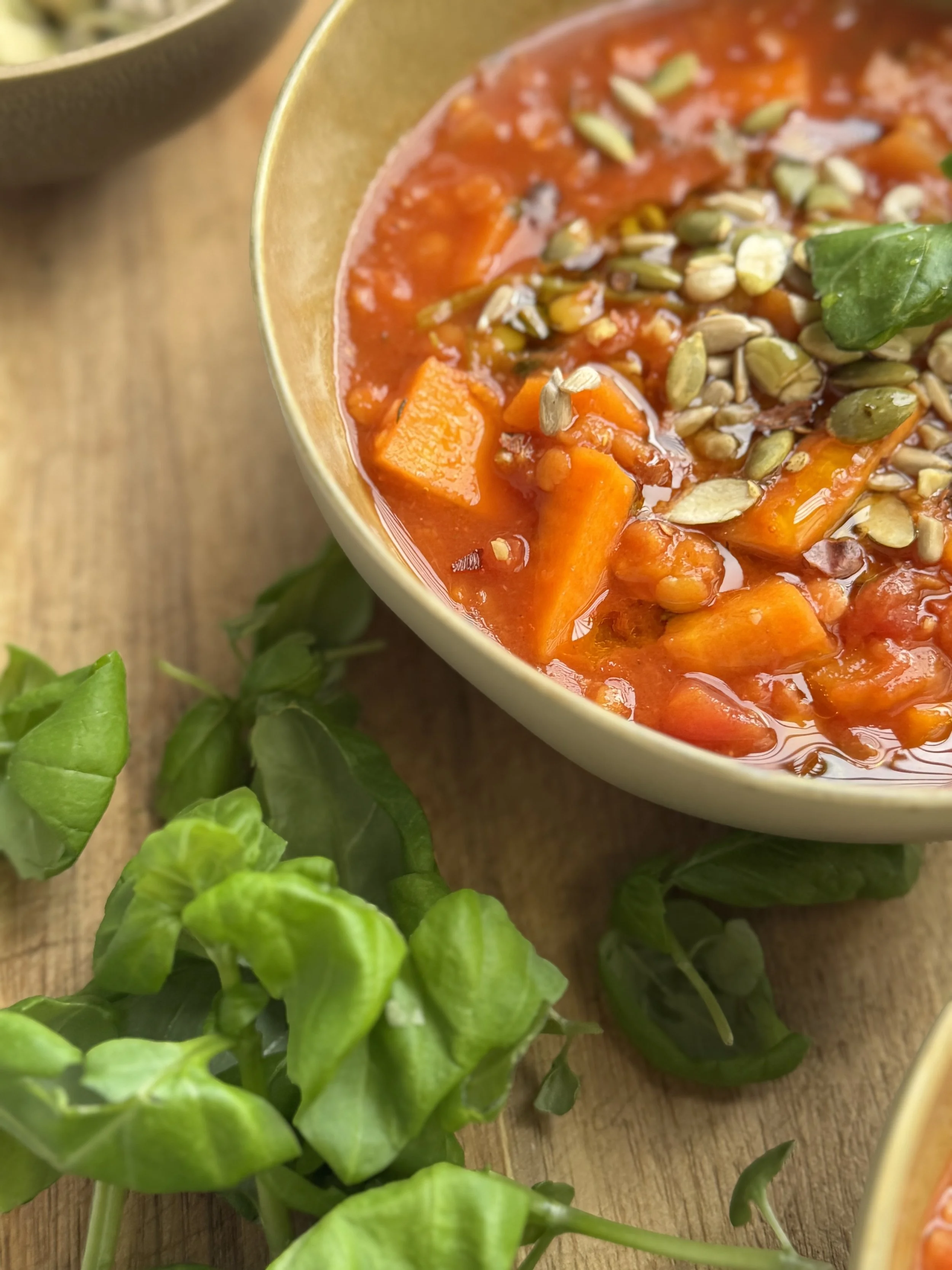 Toppið gjarnan með fersku basil og ristuðum fræjum.