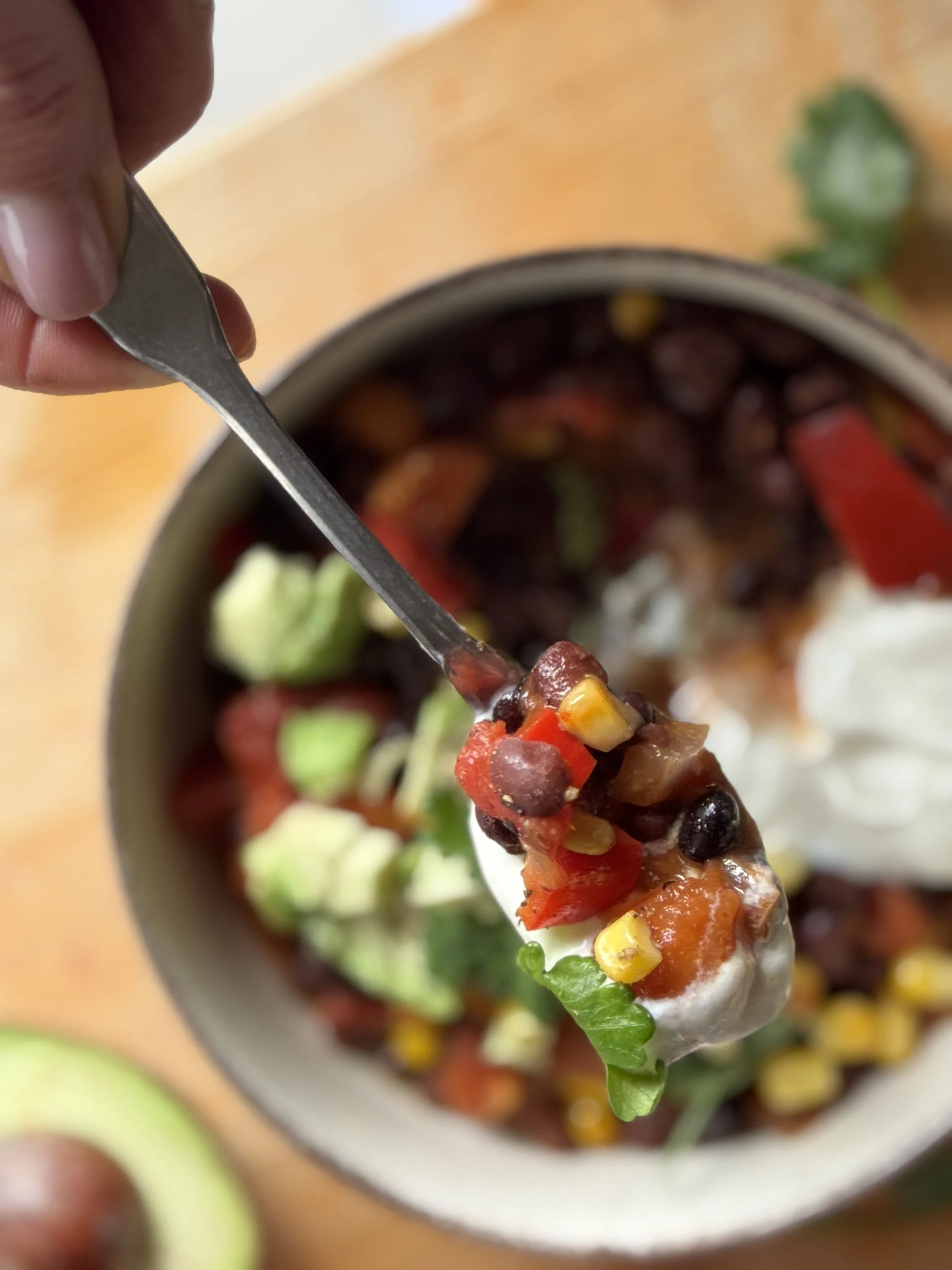 Ótrúlega einfalt, próteinríkt chili sem er fullkomið í notalega máltíð. Það er náttúrulega trefjaríkt, saðsamt og fullt af bragði.